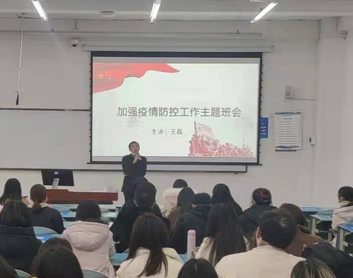 近期,成都市郫都区陆续出现新冠肺炎零星确诊病例,成都市疫情防控迅速进入战时状态,为进一步强化疫情防控,2020年12月9日下午,马克思主义学院在颐德楼H401召开“加强防控疫情工作”主题班会,班会由研究生辅导员王磊老师主持,全体研究生参加了会议。
