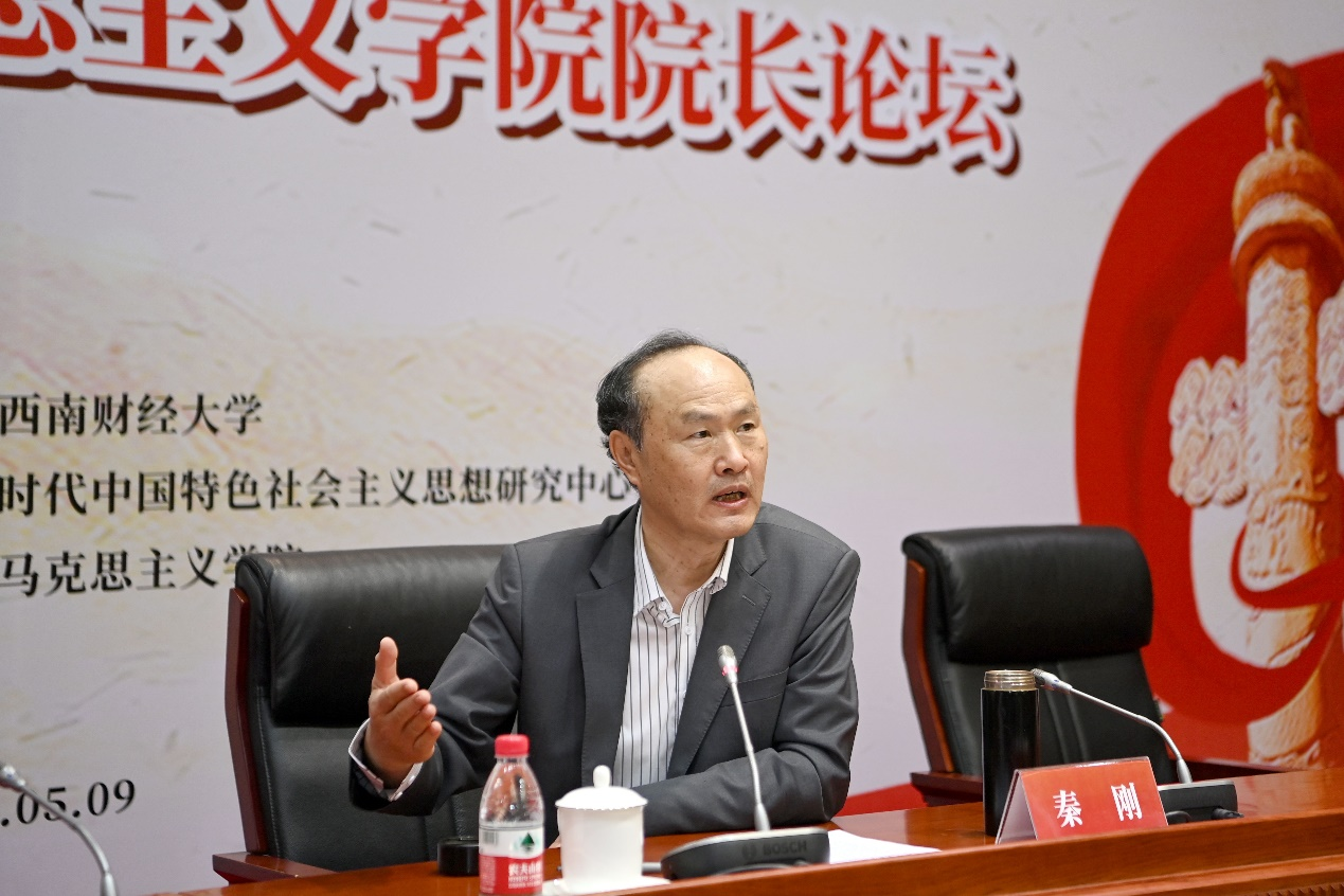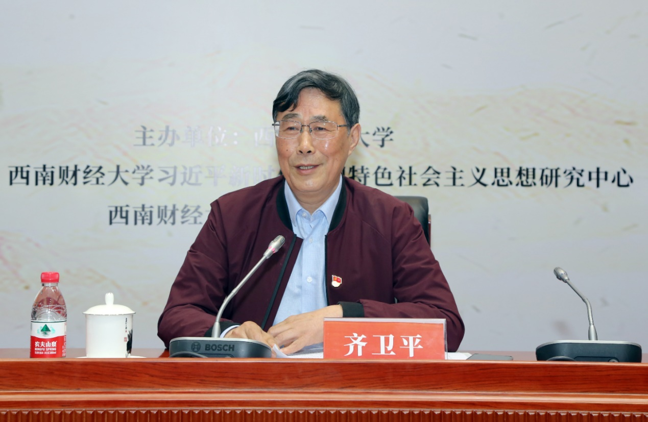 西南财经大学党委副书记马骁教授、四川省教育厅宣传思想与统战工作处处长李大鹏在开幕式上致辞。学校党委常委、副校长尹庆双教授主持研讨会开幕式。