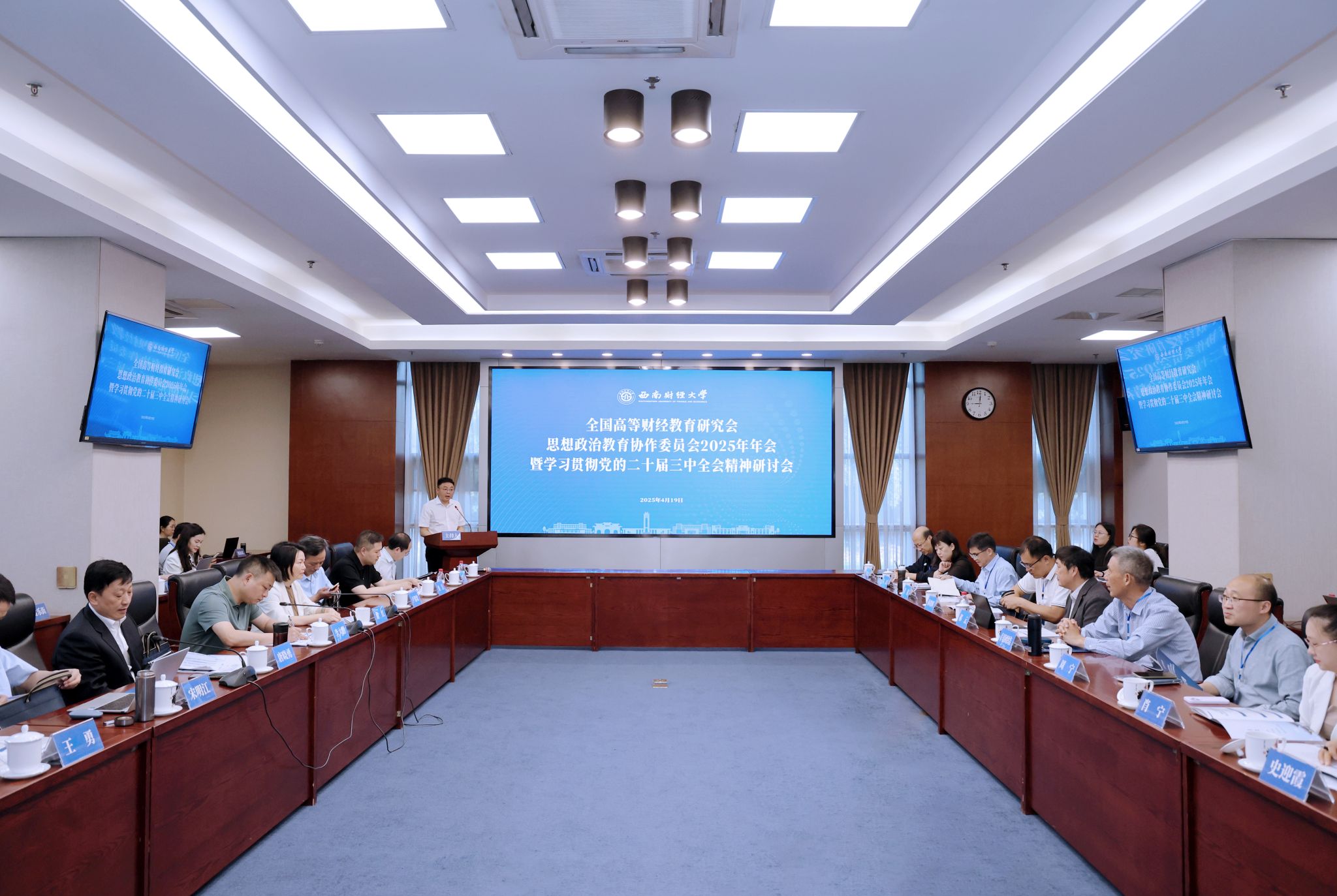 4月19日,全国高等财经教育研究会思想政治教育协作委员会2025年年会暨学习贯彻党的二十届三中全会精神研讨会在柳林校区举行。会议主题为教育强国建设与数字经济时代财经高校立德树人。学校党委副书记谢红,省委教育工委、教育厅宣传思想与统战工作处处长李大鹏致辞。