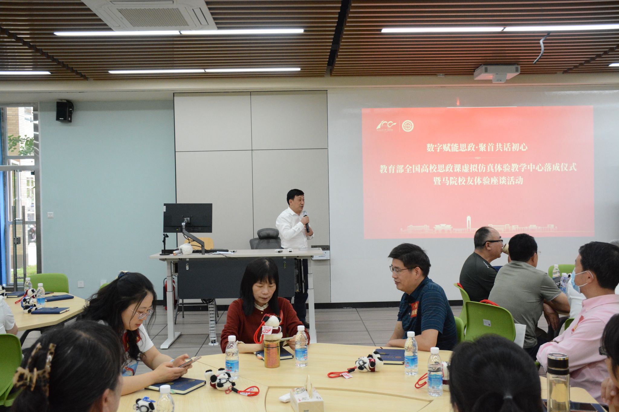 5月31日下午,西南财经大学马克思主义学院以“数字赋能思政,聚首共话初心”为主题,于颐德楼I104举行教育部全国高校思政课虚拟仿真体验教学中心落成仪式暨马院校友体验座谈活动,邀请来自全国各地的校友重返母校,共叙师生情谊,共话未来发展。学院领导班子、教师代表、返校校友及在校学生代表参加了本次座谈会。落成仪式暨座谈会由学院党委书记雷栋良主持。