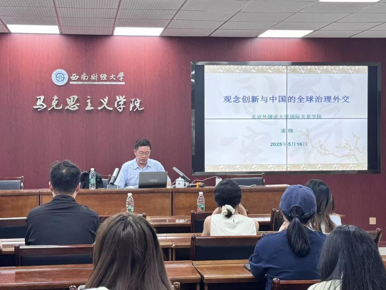5月16日下午,北京外国语大学国际关系学院康晓副教授作客光华讲坛,在通博楼A117带来题为“观念创新与中国的全球治理外交”的学术讲座。马克思主义学院王翔宇副教授主持,50余名师生参与研讨。